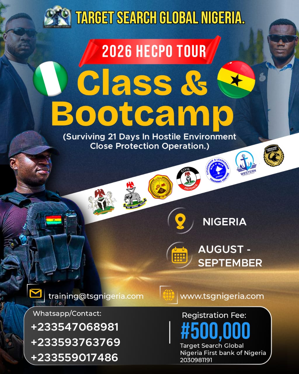 Target Search Global Nigeria is a specialized training company with a proven track record in delivering security and medical training services. We are committed, capable, and competent to provide programs ranging from commencement-level courses to high-level professional security and crisis response training.