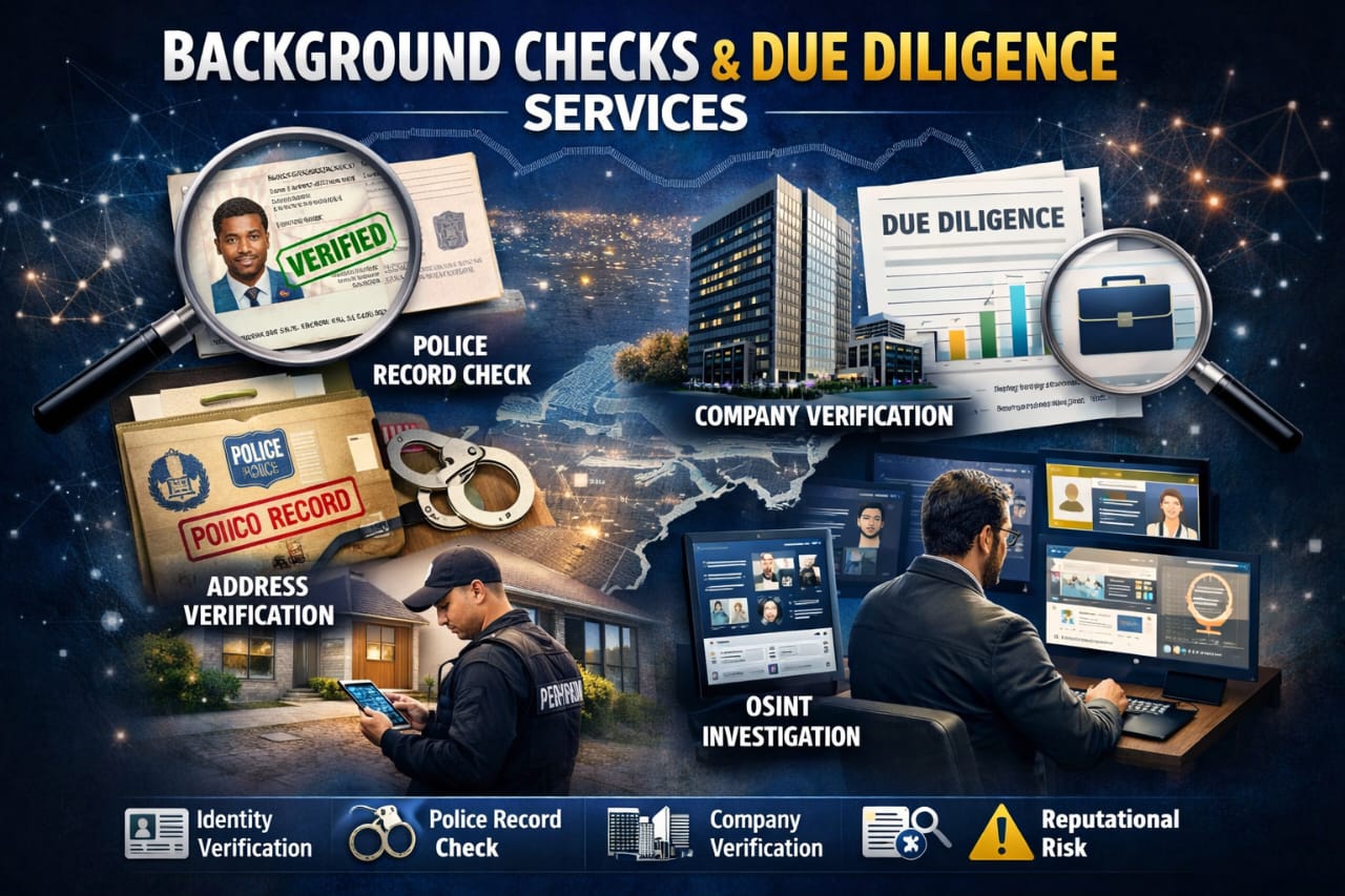 We provide comprehensive background checks to help individuals, organizations, and institutions make informed decisions. Our process covers identity verification, criminal record checks, employment history, address verification, and reputational assessment—ensuring you engage only with trusted and verified persons.